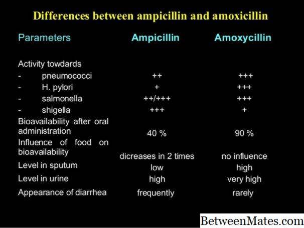 Именно разница в составе является определяющей характеристикой, отличающей амоксициллин от ампициллина: