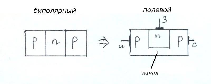 Устройство биполярного транзистора и полевого транзистора с управляющим p-n-переходом
