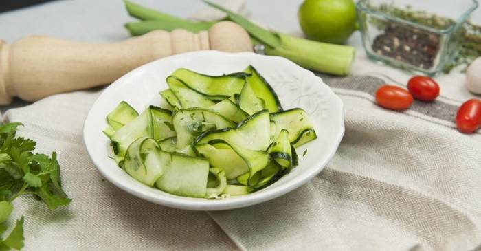 - цукини можно употреблять в пищу в сыром виде, кабачки же без термической обработки не едят;Сырые ломтики цукини в пасте — классический итальянский рецепт