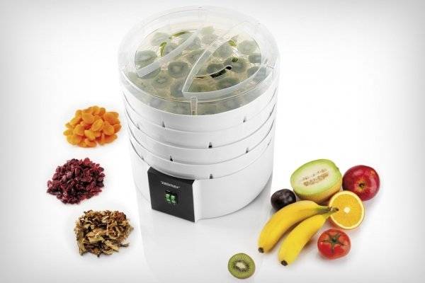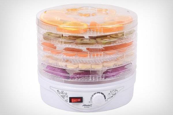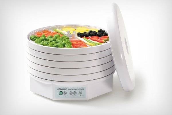 Если пользоваться прибором предстоит только время от времени, для небольших порций продуктов, и качество не имеет принципиального значения, можно купить недорогую сушилку. Она поможет испарить из фруктов и овощей большую часть влаги, даже если изнутри они останутся слегка сыроватыми.