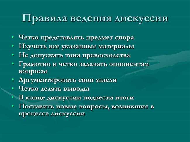 Важно помнить о толерантности и уважении к мнению других. Соблюдение этих принципов позволит эффективно и этично достигать целей обсуждения и находить наилучшие решения