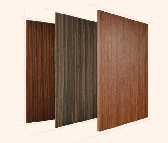 Основа – МДФ, иногда – ДСП, на которую наклеивают тонкий слой ценного дерева – шпон.