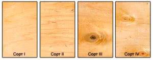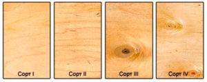 Фанеры ФС различают пяти сортов: Е (элитный), 1, 2, 3, 4. Разделение материала на категории проводится на основе внешних слоев поверхности: