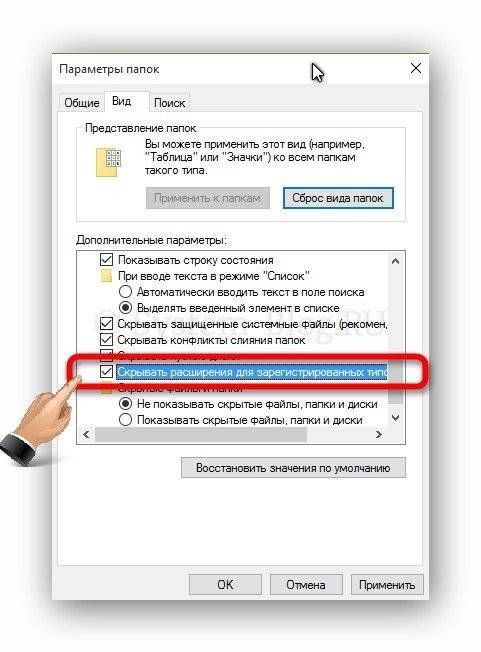 Обычно в Windows по умолчанию отображение расширения файлов скрыто. Включить его можно в свойствах папки, во вкладке «Вид».