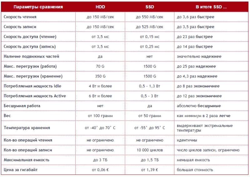 Подводя итог нашему сравнению, ниже приводим таблицу, где можно посмотреть отличия дисков в цифрах.
