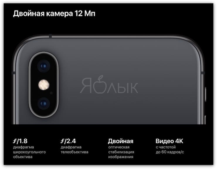 С точки зрения основных характеристик, разницы между камерами iPhone X и iPhone XS никакой нет. Оба этих смартфона оснащаются двумя камерами на 12 мегапикселей на тыльной стороне устройства. Одна их этих камер оснащается широкоугольным объективом с диафрагмой f/1.8, а другая телеобъективом с диафрагмой f/2.4.