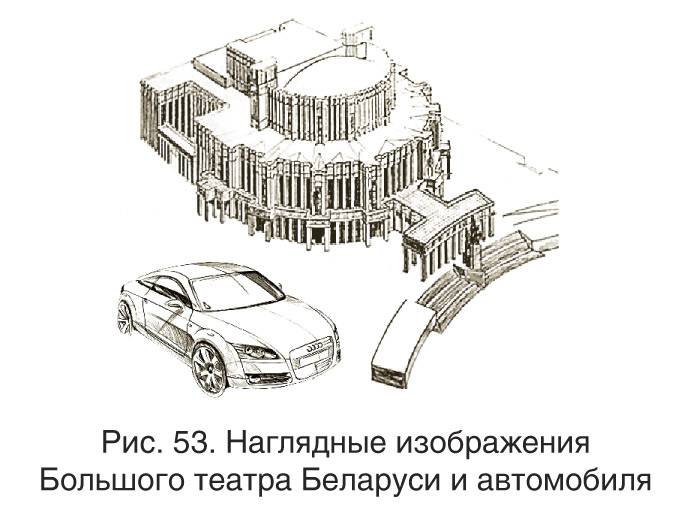 Проецирование предмета на плоскости проекций дает нам представление о форме самого предмета только с одной стороны. Чтобы получить представление о форме предмета в целом, нужно проанализировать и сравнить между собой отдельные его проекции. Предмет можно спроецировать на плоскость проекций таким образом, чтобы на созданном изображении было видно сразу несколько его сторон. Полученное таким образом изображение называется наглядным. Его используют для реализации технического замысла автора при выполнении проектирования и конструирования разных объектов (рис. 53). Для получения наглядного изображения предмета используют аксонометрическую проекцию (рис. 54).