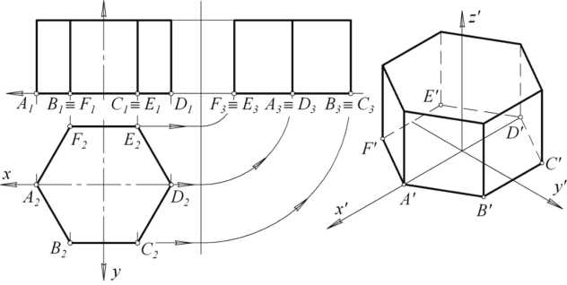 Аксонометрию предмета обычно строят по его техническому чертежу, на котором могут быть указаны проекции осей пространственной системы координат Oxyz, к которой отнесен предмет.