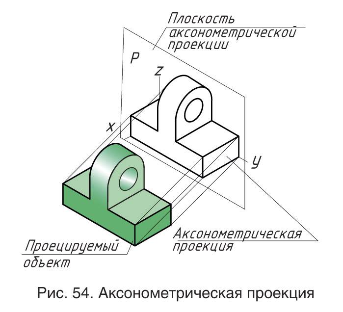 Аксонометрическая проекция — это изображение, полученное при параллельном проецировании предмета вместе с осями прямоугольных координат на произвольную плоскость.