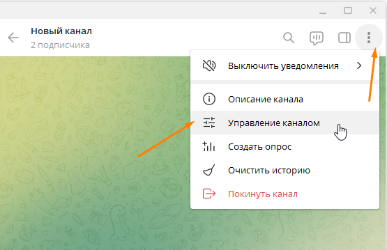 После создания можно приступить к настройке канала. На компьютере для этого нужно кликнуть на три вертикальные точки в правом верхнем углу и выбрать «Управление каналом».