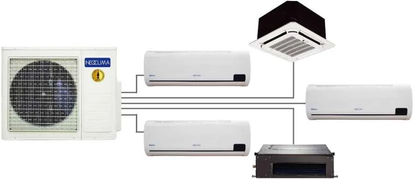Так называют разновидность стандартных двухблочных кондиционеров, в состав которой входит один внешний модуль и несколько (до 5-8) внутренних блоков. Такое техническое решение обладает следующими преимуществами:
