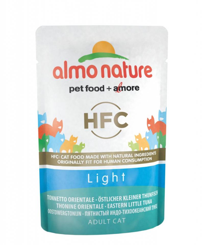 Исключительно натуральный корм Almo Nature изготовлен из мясного бульона, занимающего половину объёма пауча, отборного тунца из Тихого и Атлантического океанов и риса. Несмотря на тот факт, что в рыба – это не природное питание для кошки (животное не ловят рыбу самостоятельно), схожий по составу, текстуре и ценности с говядиной тунец прекрасно усваивается кошачьей системой, улучшая работу ЖКТ.