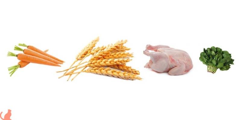 - На первом месте пшеничная мука – источник дешевых углеводов. Часто вызывает пищевую аллергию у кошек и приводит к набору лишнего веса. Злаки, в целом, не являются типичной едой для кошек, поэтому они могут спровоцировать нарушение пищеварения.