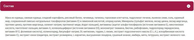 - Большой процент содержания мяса и мясных субпродуктов.