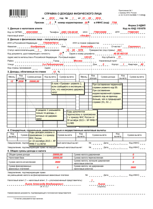 - Не позднее 1 марта года, следующего за отчетным (п. 5 ст. 226 НК РФ), если НДФЛ по указанным в справке доходам еще не был уплачен;
