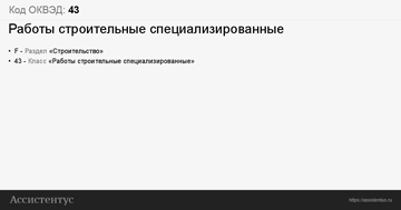 43.99.9Работы строительные специализированные, не включенные в другие группировки