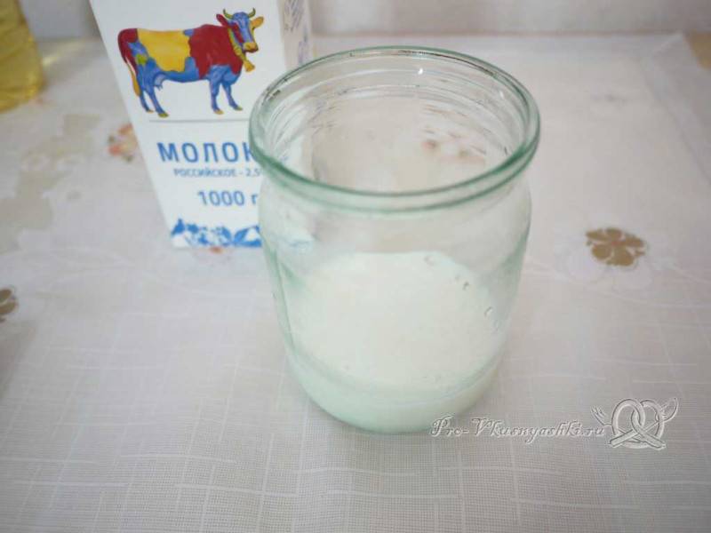 Для приготовления нам потребуется поллитровая стеклянная банка. В нее заливаем молоко (1/2 ст).