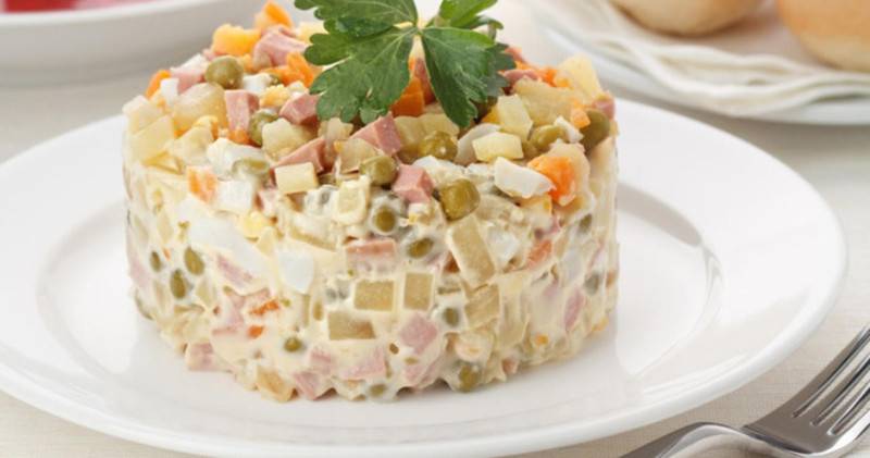- В некоторых рецептах оливье используется колбаса или ветчина, которые являются продуктами высокой жирности и содержат соли. Это стоит учитывать, особенно при наличии проблем с давлением или сердечно-сосудистыми заболеваниями.