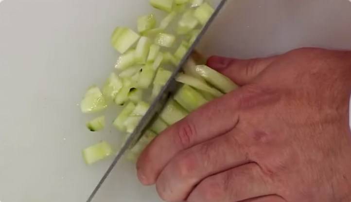13. Нарезаем наш огурчик небольшими ровными кубиками.