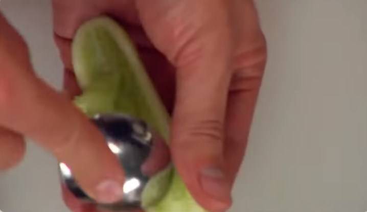 12. Очищаем свежий огурец. Также из него можно убрать семечки, чтобы огурец не дал лишнего сока в салат.