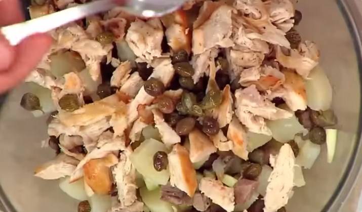- 2 ложки сока лимона и чайную ложку горчицы, приправы к майонезу, чтобы получился пикантный соус для заправки.