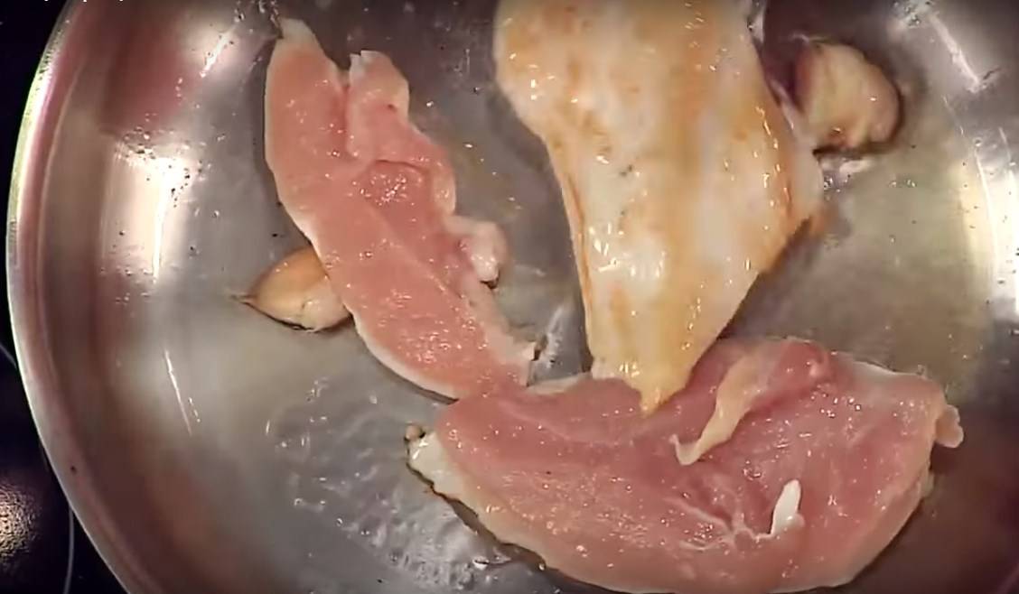 2. Обжариваем филе на оливковом масле с чесноком до полуготовности.