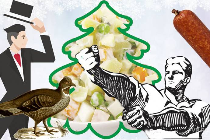Первый рецепт салата «Оливье» появился в журнале «Наша пища» в 1894 году. По воспоминаниям современников, в его состав входили рябчики, раковые шейки, оливки, каперсы, паюсная икра и соя-кабуль. Сложить все это вместе и съесть предложил французский повар Люсьен Оливье, почему салат и зовется так, а не иначе.