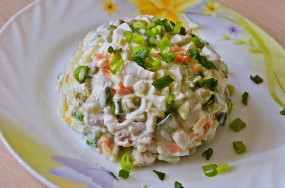 - Оливье — универсальный салат, который можно комбинировать с другими блюдами. Он может быть отличным гарниром к мясному или рыбному блюду.