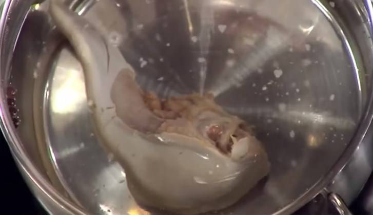 5. Когда язык приготовится, аккуратно вынимаем его и кладем в холодную воду.