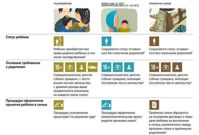 Они обозначают форму устройства ребенка в семью или в специальное учреждение, а также регламентируют государственное содержание опекаемого и полномочия ответственного лица, выступающего в роли опекуна или попечителя. У опекуна больше прав, нежели у попечителя, но и большее бремя обязанностей.