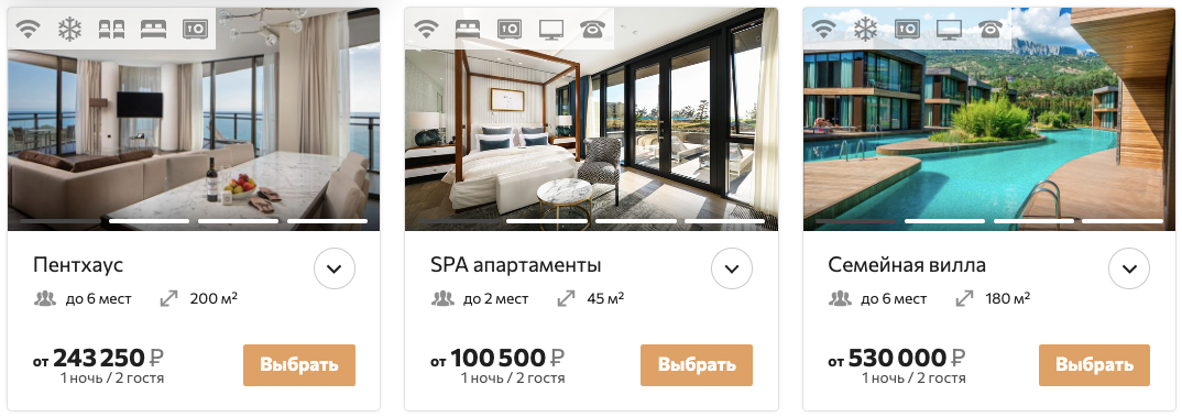 | Краткосрочное размещение | Дополнительные услуги: рестораны, спортивные и бизнес центры | Дополнительные удобства: бассейны, спа-салоны, фитнес-центры |