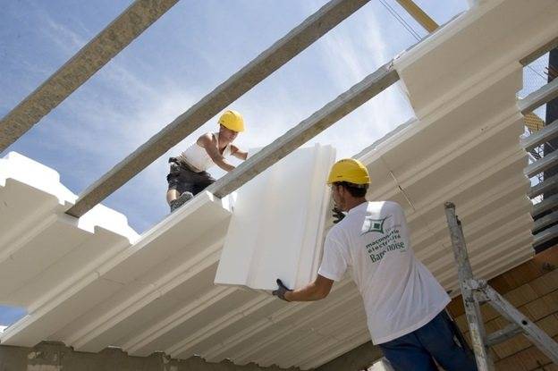 Учитывая, что пенопласт это тот же пенополистирол, но большей плотности, область его использования в строительстве в основном сводится к утеплению конструктивных элементов зданий и сооружений. Например, не прессованный полимерный материал довольно часто применяется при утеплении фасадов, учитывая его высокие теплоизоляционные свойства, способность к адгезии.