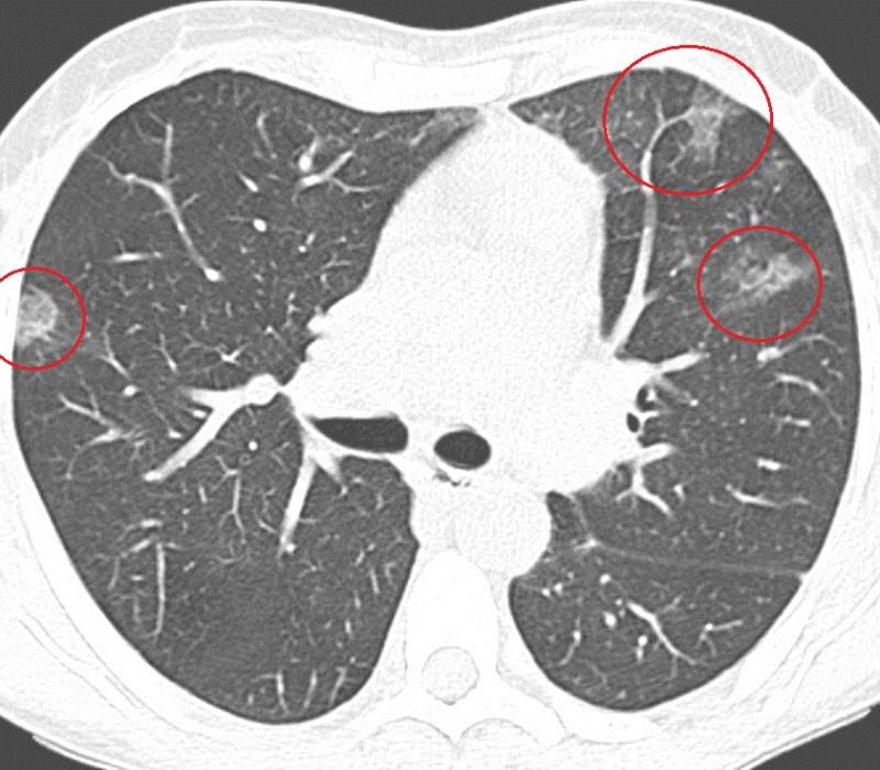 При сравнении снимков компьютерной томографии между коронавирусной и обычной пневмонией также отмечаются различия, причем довольно существенные. При COVID-19 обычно пневмония двусторонняя, и местом ее локализации является периферия легких, то есть непосредственно располагается под плеврой.