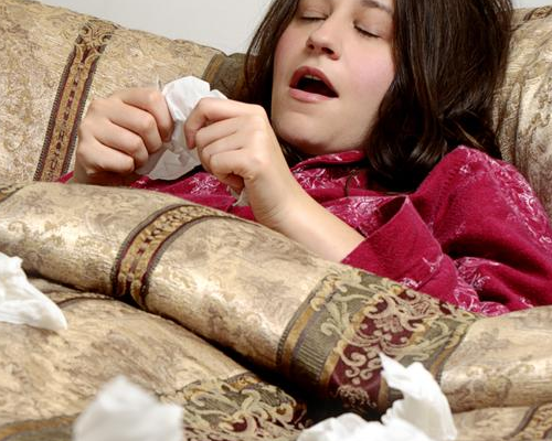 - С 1 по 3 день – лихорадка, мышечная и головная боль, болезненность в горле, периодический кашель, слабость;