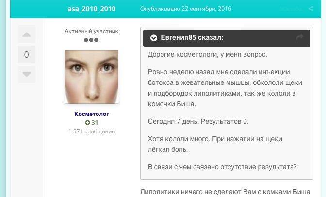 Спустя три сеанса становится заметно, как поплывший овал лица вновь подтянулся. Кожа, как и было обещано, ничуть не обвисла. Жировые комки Биша слегка уменьшились в объеме — это не особо заметно в жизни, но разница на фото видна. Конечно, хотелось бы большего, но для этого одними инъекциями не обойтись — нужно подключать аппаратные процедуры.