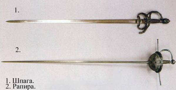 Шпага и рапира. По своим характеристикам рапира и шпага практически идентичны и однозначного ответа об их отличиях оружиеведение не дает: