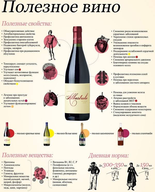 Сухое вино подойдет ко многим блюдам за столом, оно украсит любой вкус, а самое главное, что оно еще и полезное, помогает улучшению самочувствию. И при всех этих свойствах, напиток еще весьма быстро выводится из организма.