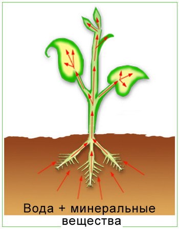 С помощью корней обеспечивается поступление в организм растения минерального питания и воды, а также осуществляется водоснабжение.