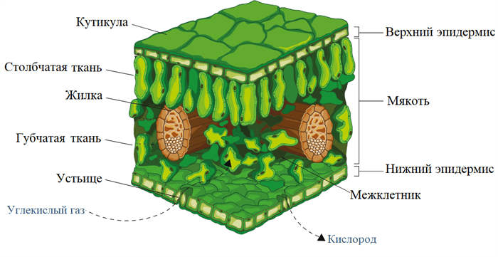 - Паренхима (паренхиматическая ткань) – это внутренний слой клеток, который содержит хлорофилл, и выполняет свою главную функцию – фотосинтез.