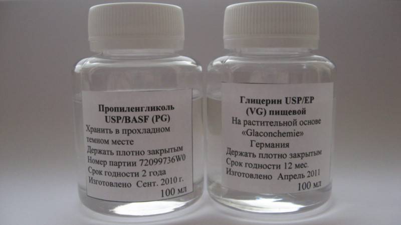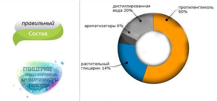 Стандартная жидкость для вейпа может состоять из таких элементов: