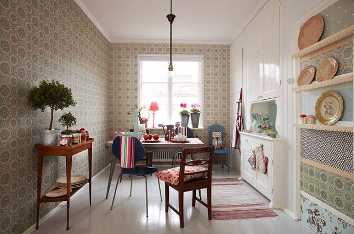 Плоские виниловые обои устойчивы к трению, поэтому идеально подходят для отделки кухни, где так часто появляются всякого рода пятна.