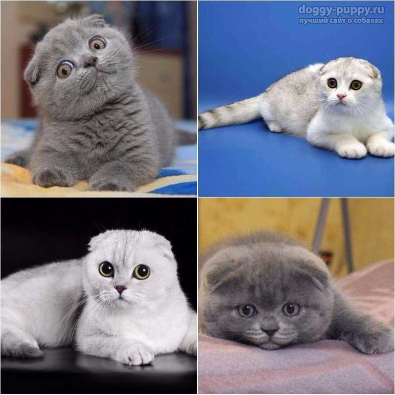 | Специфические особенности | Пол можно определить по мордочке. У котов она более крупная, мускулистая, с грубыми очертаниями. У самок мордочка более изящная, аккуратная. | Котята фолд рождаются с прямыми ушами и только к 4 месяцам они опускаются и прижимаются к голове. Шотландские кошки любят сидеть, расставив в стороны задние лапы, завалившись на одно бедро либо принимать позу «суслика». Однако такие позы нехарактерны для британцев. |