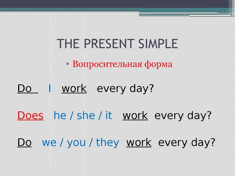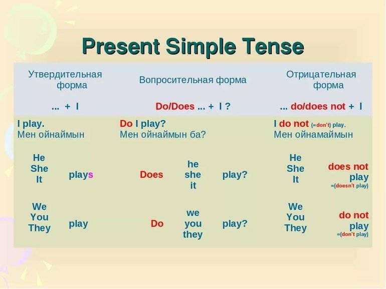 Важно: к основному глаголу (сказуемому) окончание не добавляется, он используется всегда в 1-ой форме! Примеры: I do not (=don’t) like to read books (Я не люблю читать книги). He does not (= doesn’t) smile (Он не улыбается)