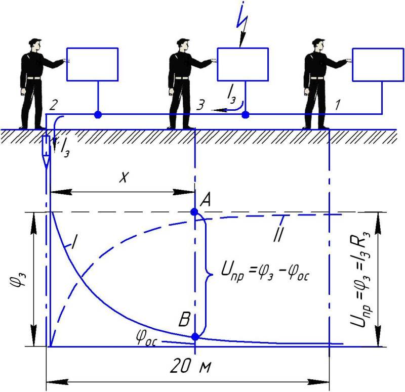 К небезопасным режимам при происхождении разницы потенциалов, можно отнести то, что эта разница значительно растет пропорционально длине участка.