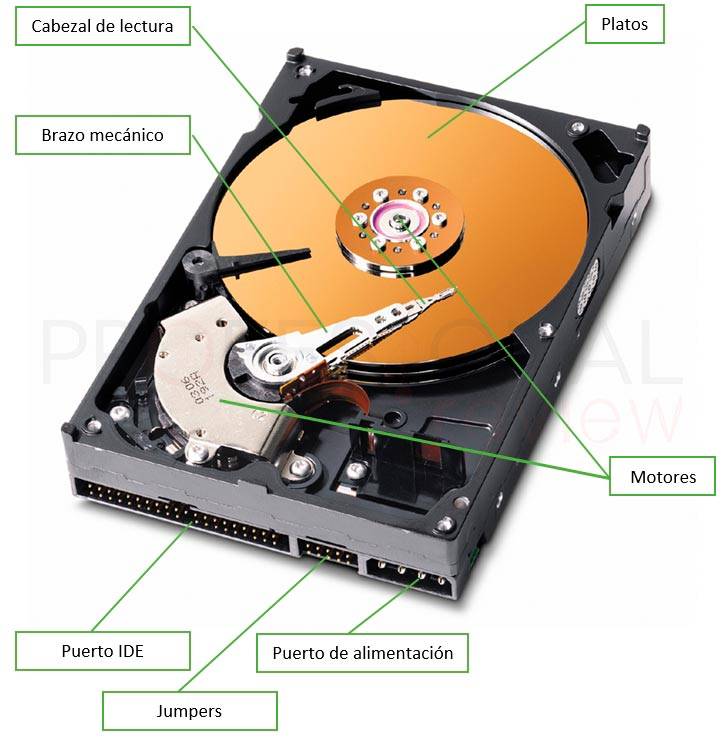 Механические жесткие диски (HDD) не имеют этого названия, они состоят из различных подвижных механических частей и цепи управления. Подвижная секция в основном состоит из одного или нескольких жестких магнитных дисков и пишущей головки. Эти диски отвечают за хранение информации, в то время как руководитель отвечает за чтение и запись информации о них; Во время этого процесса эти части перемещаются, давая устройству характерный звук и название.