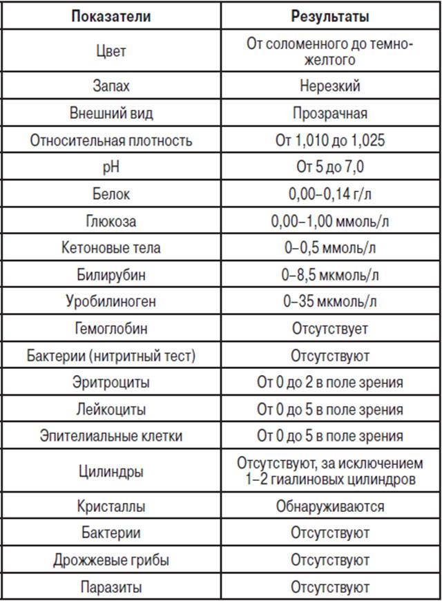 Нормы показателей, которые определяются при выполнении анализа, одинаковые как у взрослых, так и у детей. При расшифровке учитывается, что моча по Нечипоренко в норме должна удовлетворять следующим значениям: