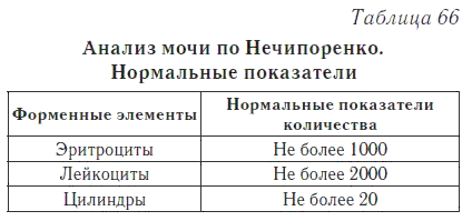 Анализ мочи по Нечипоренко может показать повышенные значения, что указывает на то или иное заболевание. Однако иногда число цилиндров и других веществ может увеличиваться при определенных физических состояниях, поэтому ставить диагноз и назначать лечение может лишь врач. Таблица возможных заболеваний при повышении числа конкретных частиц:
