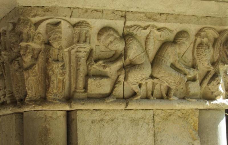 К началу 12 века широкое распространение получило искусство монументальной скульптуры, в частности, рельефа. За византийскими образами следом пришли религиозные композиции, олицетворяющие сюжеты из евангелия. Скульптура была повсеместно использована в качестве украшений соборов и церквей: рельефы человеческих фигур и монументально-декоративные композиции встречались повсюду.