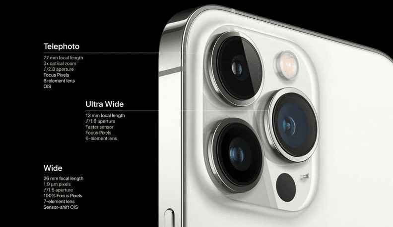 Каждый объектив iPhone 13 Pro имеет большую диафрагму, чем iPhone 13, чтобы пропускать больше света, с / 1,8 сверхширокоугольным и ƒ / 1,5 широким по сравнению с камерами ƒ / 2,4 сверхширокоугольной и ƒ / 1,6 широкоугольной камеры. IPhone 13, что должно улучшить качество изображения.