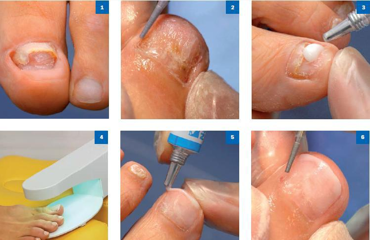 При лечении аппаратом пораженная часть ногтя обрабатывается специальным инструментом, спиливающим «плохой» участок ногтя и с помощью излучения убивает грибок, который находится под ногтем и в глубоких слоях ногтевой пластины.